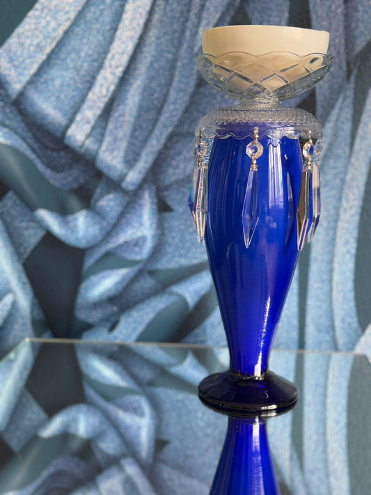 Upcycled Crystal Candle Holder with a Blue Glass Body by BolourJan