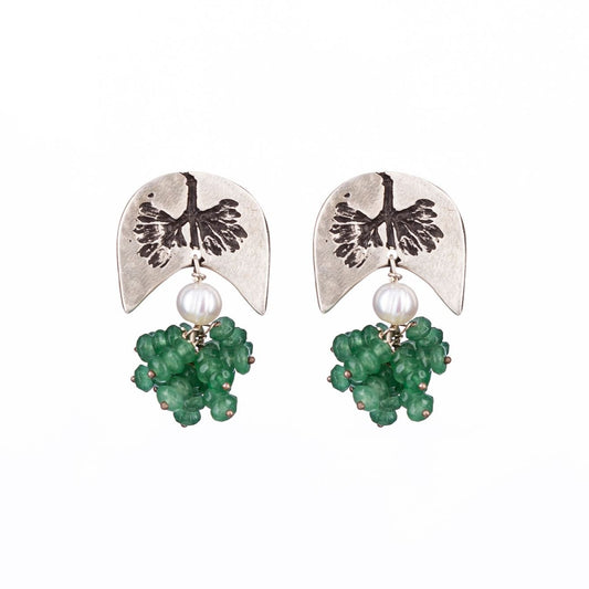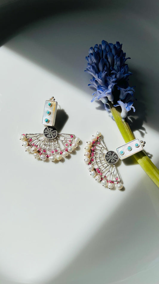 Silver Midnight Bloom Handmade Earrings by Maryam Khazali (Silver, Onyx and Pearl)