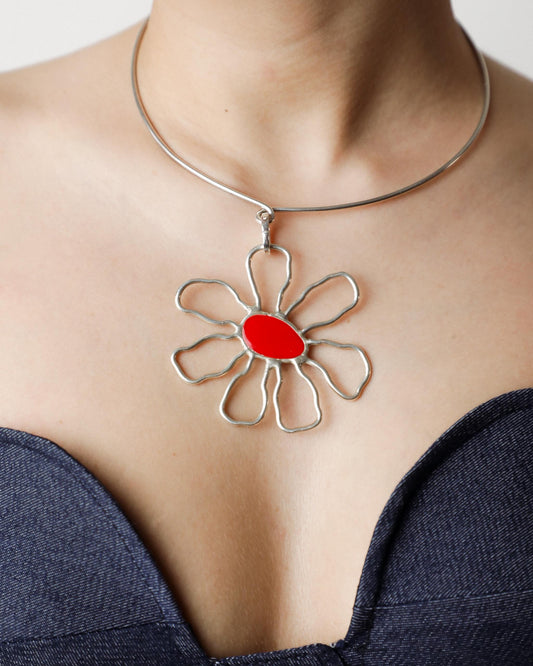 Upside-Down Tulip Silver Earrings with 5 Red Drop Stones – Designed by Zargoon