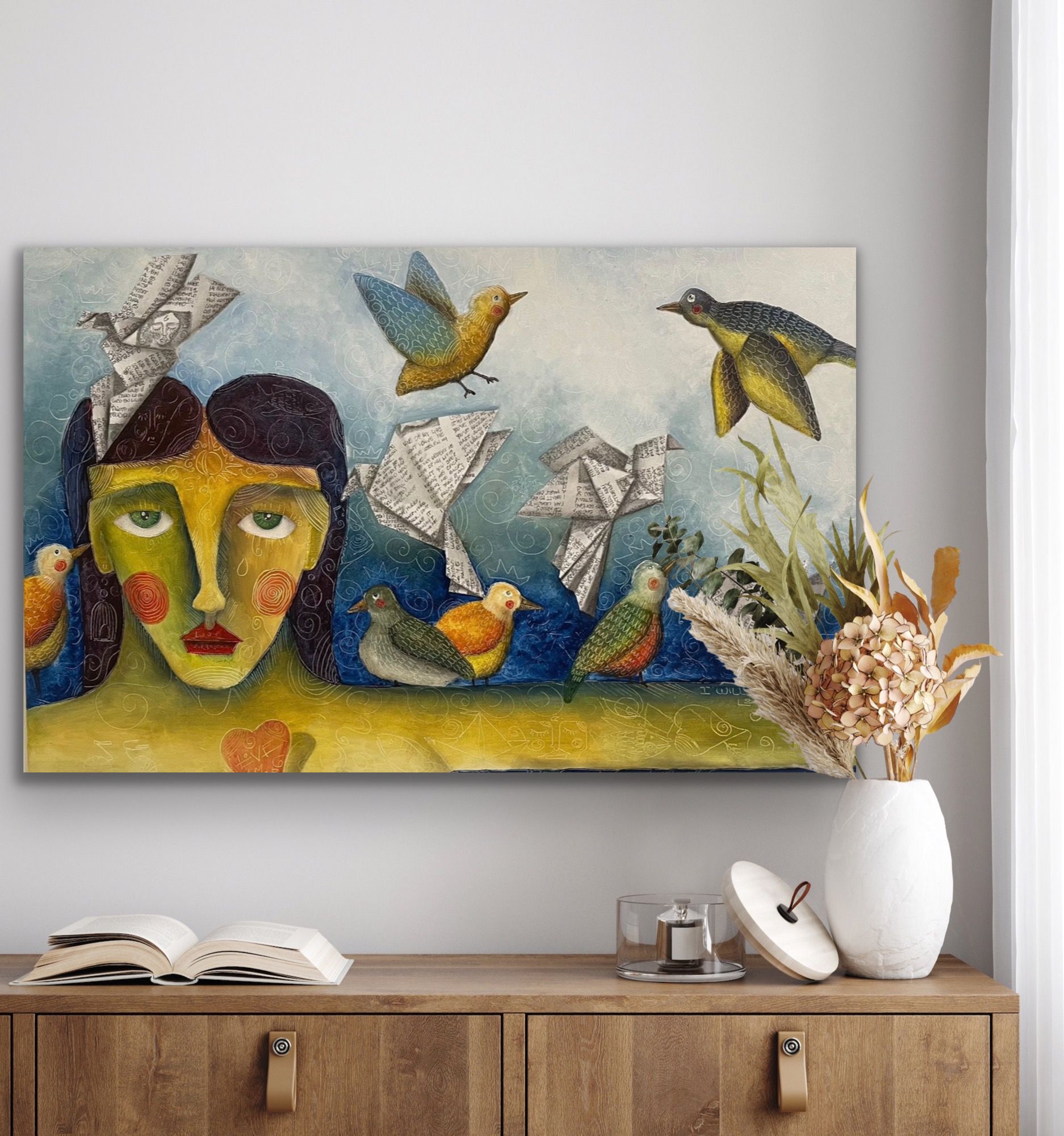 Beating of wings Painting by Jorge Roja, Acrylic on canvas (24"x 36")