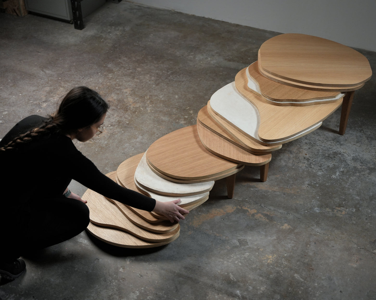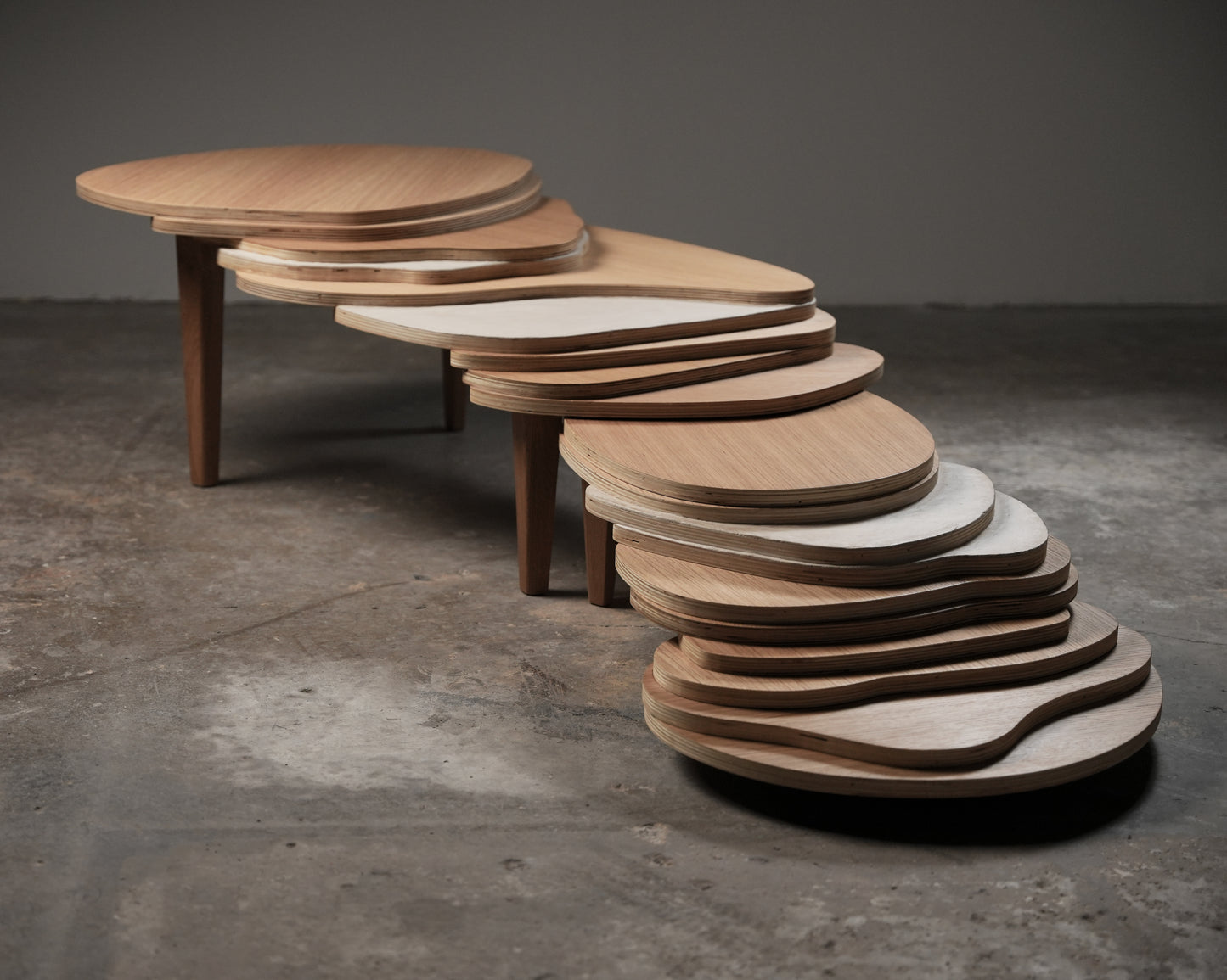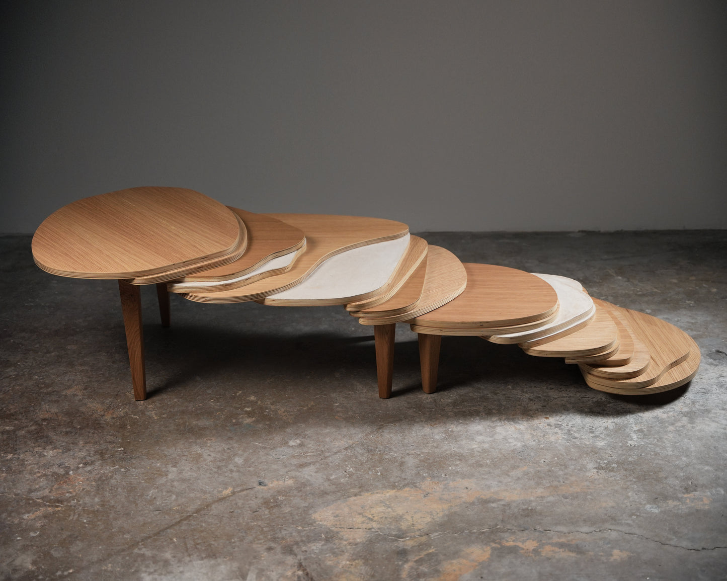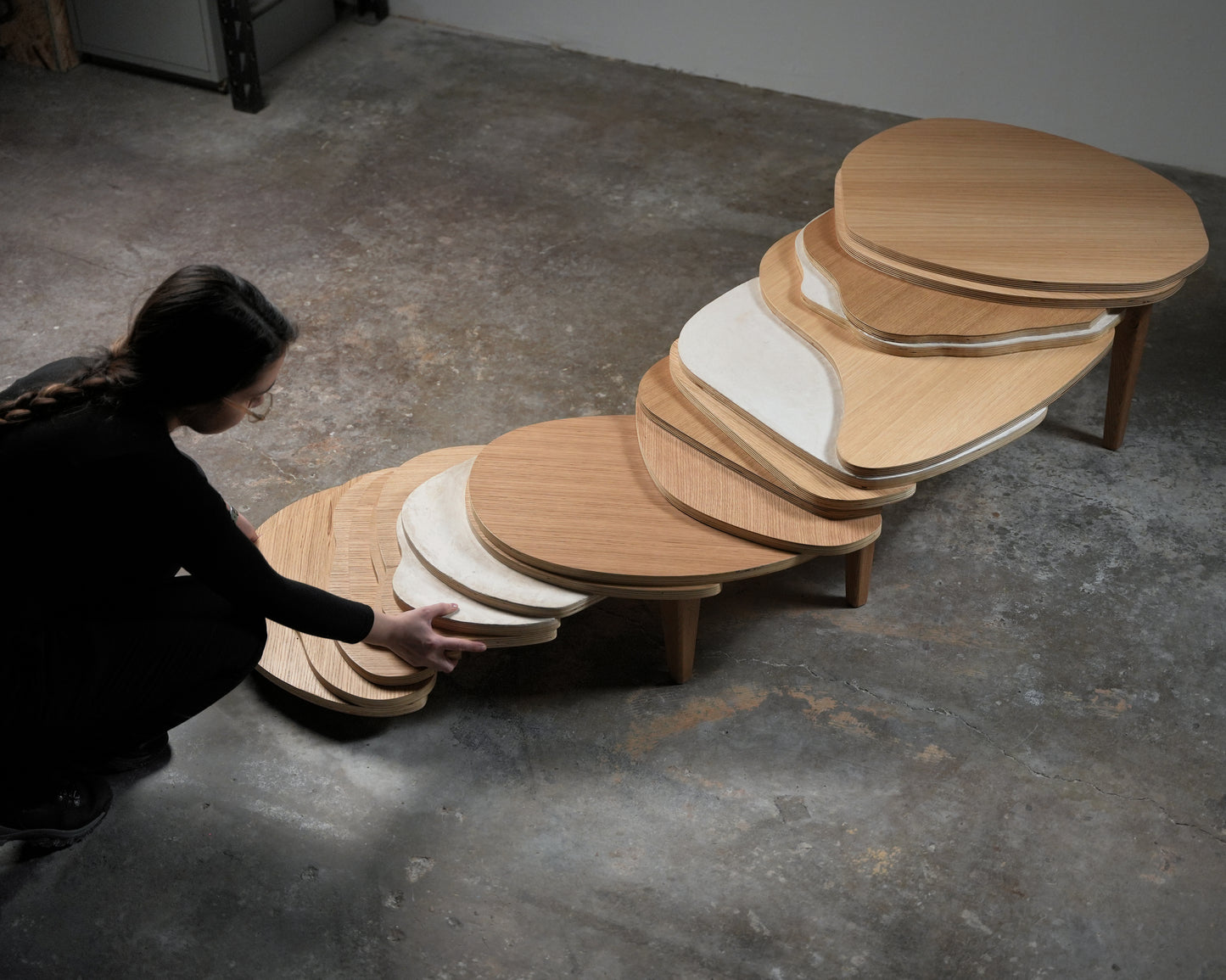 This coffee table design is a tribute to the natural ravines that thread through the city, forming a powerful connection between urban life and the river flowing below. The stepped layers of the table mimic the steep contours of the landscape, embodying the transition from the heights of the city to the depths of the ravine. Each tier offers a unique and functional surface, inviting users to interact with the design in a way that mirrors the layered complexity of nature.