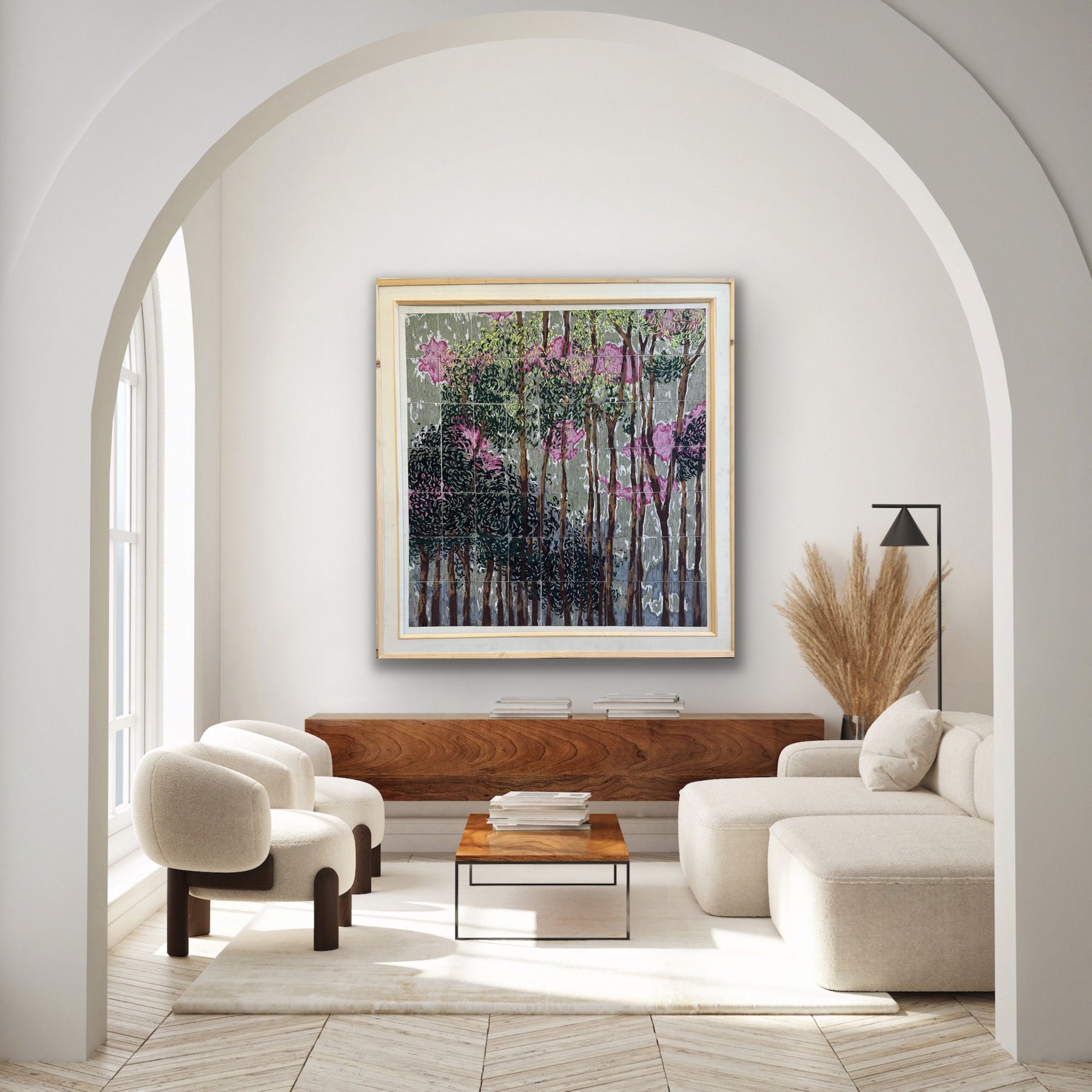 "Far" Painting by Pegah Shamlou- Oil Pastel on Cardboard (H: 38.98″ × W: 37.20″)