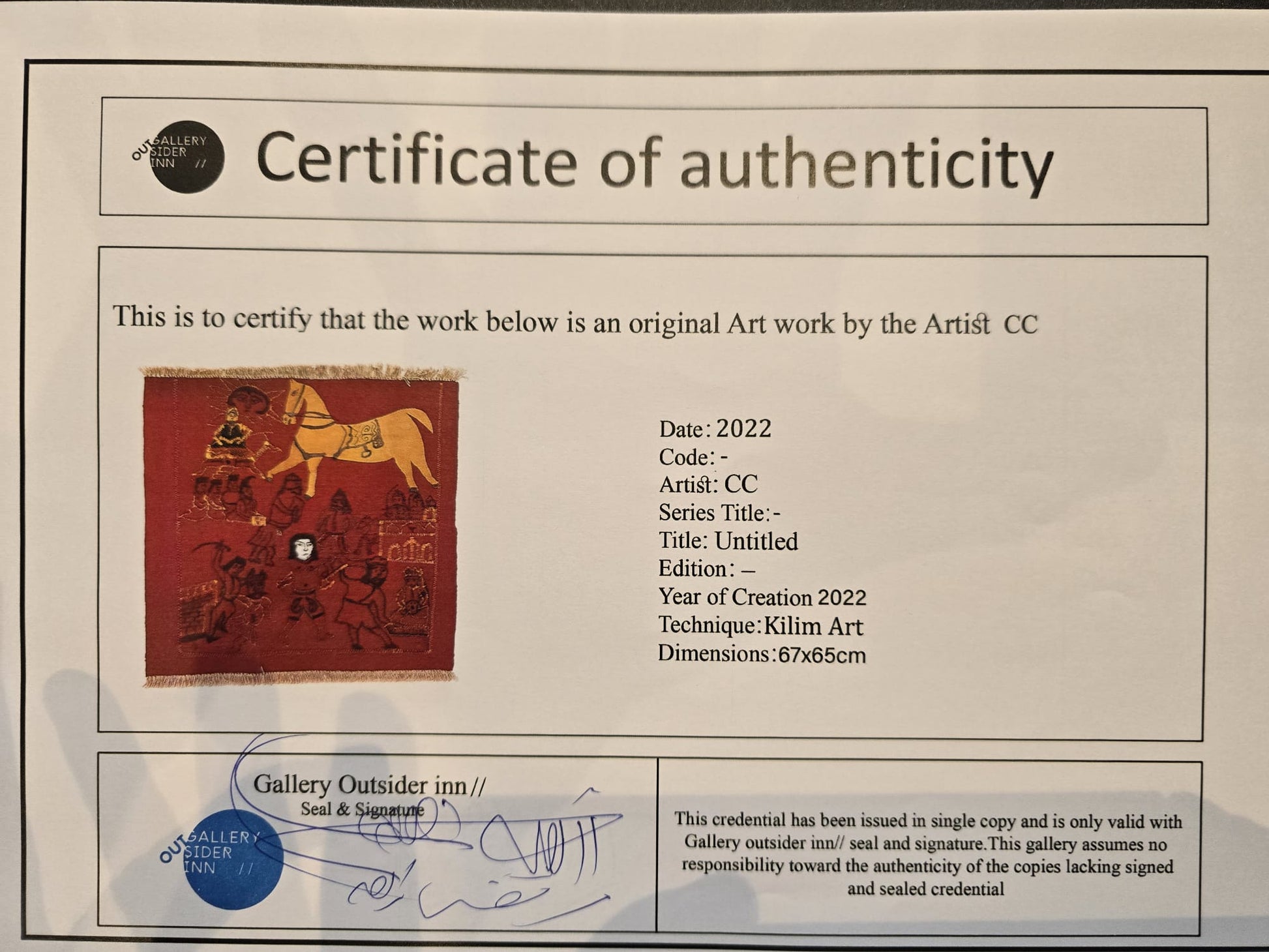 Medium/Technique: Textile Art (Kilim Art)